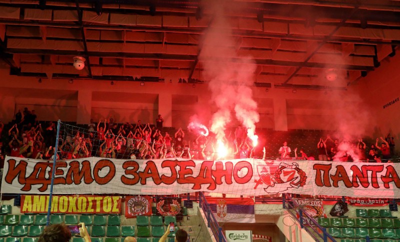 Οι οπαδοί του Ολυμπιακού και συγκεκριμένα φίλαθλοι από όλες τις περιοχές της Κύπρου, αλλά και από την Ελλάδα, βρέθηκαν στο γήπεδο και δίπλα στην ομάδα και στήριξαν τους νταμπλούχους Ελλάδας, δημιουργώντας μία ωραία ατμόσφαιρα στο γήπεδο, με συνθήματα, καπνογόνα και με εντυπωσιακό πανό για την αδερφοποίηση της Θύρας 7 με τους οπαδούς του Ερυθρού Αστέρα, τους Ντελιγέ.