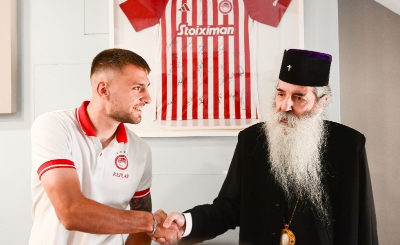 Μαζί με τον ποδοσφαιριστή της ομάδας, Ανδρέα Ντόη, ο οποίος δέχτηκε τα συγχαρητήρια όλων για την πρόκριση του Ολυμπιακού στα ημιτελικά του UEFA Conference League, ήταν και ο Μητροπολίτης Πειραιά, Σεραφείμ, ο οποίος σε δήλωσή του τόνισε: