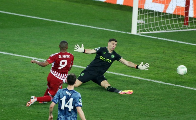 «Tο όνειρο του Ντιμπού Μαρτίνεθ και της Άστον Βίλα στο Conference League έφτασε στο τέλος της αυτή την Πέμπτη. Παρά την επιστροφή του Αργεντινού τερματοφύλακα, που απουσίαζε στα δύο τελευταία παιχνίδια λόγω τραυματισμού, η αγγλική ομάδα έπεσε ξανά (2-0) από τον Ολυμπιακό και αποκλείστηκε στα ημιτελικά με συνολικό αποτέλεσμα 6-2 . Η ελληνική ομάδα, της οποίας βασικός ήταν ο Αργεντινός Σαντιάγο Έσε , θα πάει για τον πρώτο της διεθνή τίτλο κόντρα στη Φιορεντίνα, η οποία την Τετάρτη είχε αφήσει εκτός έδρας την Μπριζ του Βελγίου».