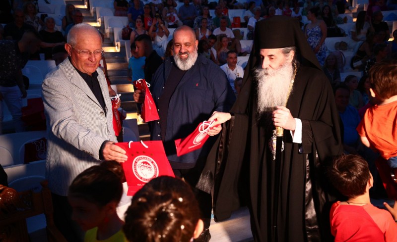 Στο Βεάκειο Θέατρο, εκατοντάδες μικροί μαθητές των εκπαιδευτηρίων της Μητρόπολης είχαν ετοιμάσει μία όμορφη εκδήλωση για τους γονείς και τους επισκέπτες που έδωσαν το «παρών», ενώ παράλληλα προβλήθηκε βίντεο με την τεράστια επιτυχία του Ολυμπιακού, την κατάκτηση του UEFA Europa Conference League. Κατά τη διάρκεια της προβολής του βίντεο τα παιδιά τραγουδούσαν τον ύμνο του Ολυμπιακού και χειροκρότησαν τη στιγμή που η ομάδα σήκωνε το Ευρωπαϊκό τρόπαιο.