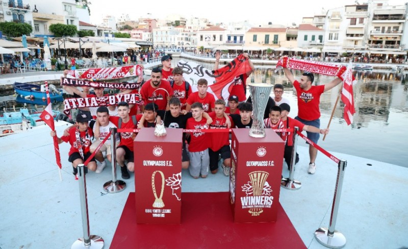 Τελευταία στάση...Άγιος Νικόλαος για τα ευρωπαϊκά τρόπαια του Ολυμπιακού και, ως συνήθως, επικράτησε «πανζουρλισμός» από το λαό του Θρύλου.
