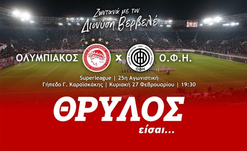 Τον ΟΦΗ αντιμετωπίζει ο Ολυμπιακός για την 25η αγωνιστική της Super League, στο «Γ. Καραϊσκάκης», με στόχο να συνεχίσει την αήττητη πορεία του προς το 47ο πρωτάθλημα της ιστορίας του.