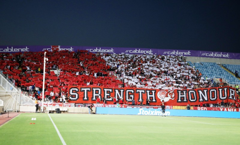 Εντυπωσιακό, όπως πάντα, ήταν το κορεό που έκαναν οι οπαδοί του Ολυμπιακού πριν την έναρξη του αγώνα με τον Απόλλωνα Λεμεσού, στο ΓΣΠ της Λευκωσίας.