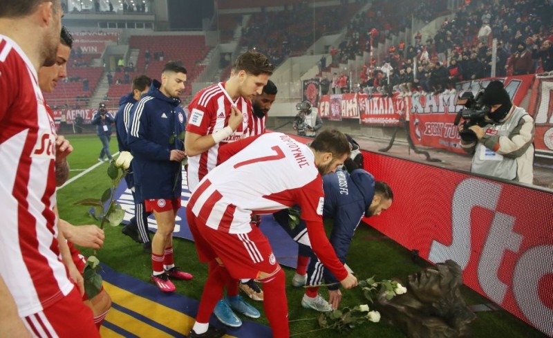 Πρώτα οι παίκτες του Θρύλου πήγαν μπροστά από το πέταλο της Θύρας 7 και άφησαν από ένα λουλούδι και χειροκροτήθηκαν από τον κόσμο που υπήρχε στο γήπεδο.