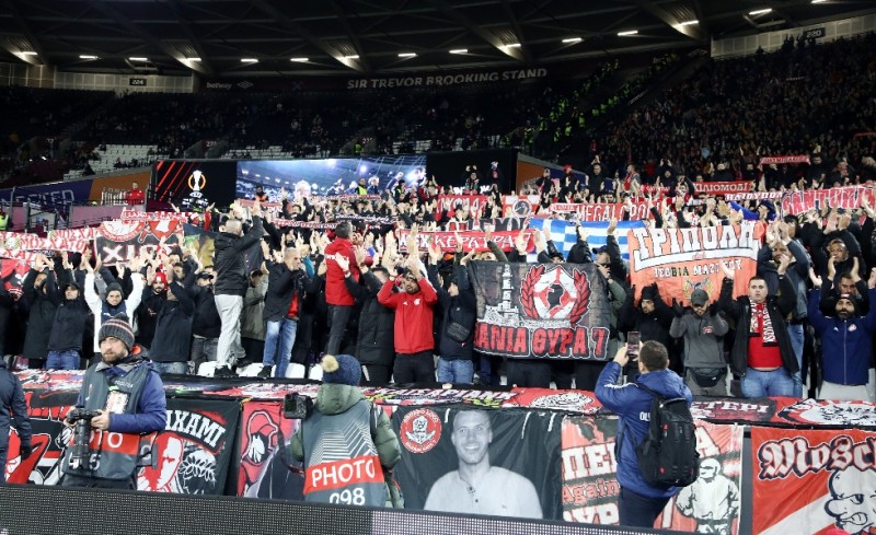 Φυσικά, στο πλευρό των Πειραιωτών βρέθηκαν χιλιάδες ΓΑΥΡΟΙ που είχαν ταξιδέψει μέχρι το Λονδίνο, για να στηρίξουν και να ωθήσουν με τη φωνή τους το σύνολο του Ντιέγκο Μαρτίνεθ. Μάλιστα, ο κόσμος του Θρύλου είχε κερδίσει από το πρώτο λεπτό την «μάχη» της εξέδρας απέναντι στους πιο πολλούς Άγγλους οπαδούς, φωνάζοντας τα ομορφότερα συνθήματα του κόσμου.