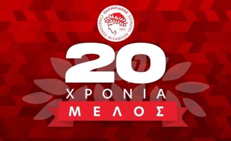 20 Χρόνια Κάρτα Μέλους! 20 Χρόνια στήριξης στον Ολυμπιακό Σύνδεσμο Φιλάθλων Πειραιώς».