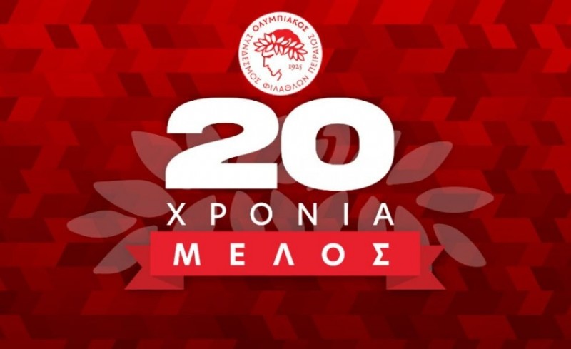 20 Χρόνια Κάρτα Μέλους! 20 Χρόνια στήριξης στον Ολυμπιακό Σύνδεσμο Φιλάθλων Πειραιώς».