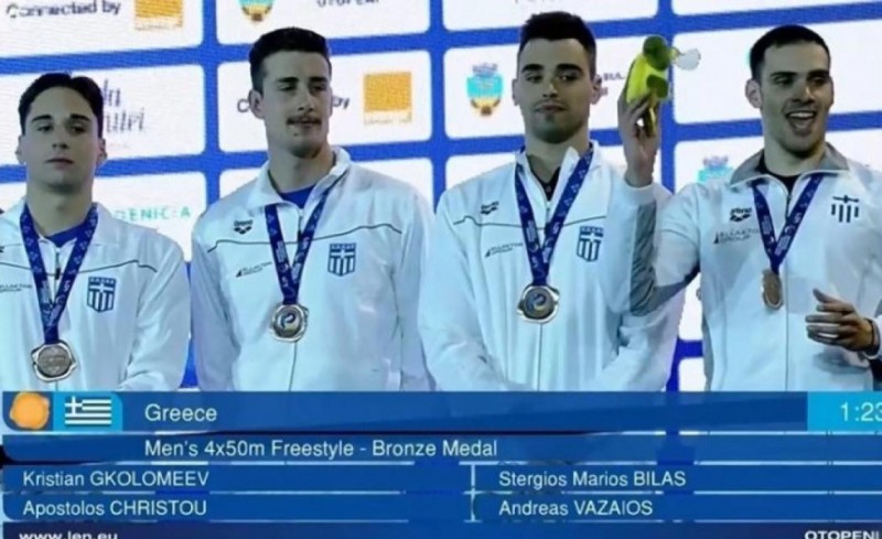 Το χάλκινο μετάλλιο στα 4Χ50μ. ελεύθερο, στο Ευρωπαϊκό πρωτάθλημα 25άρας πισίνας στο Οτοπένι, κατέκτησαν οι πρωταθλητές του τμήματος κολύμβησης του Ολυμπιακού, Απόστολος Χρήστου και Στέργιος-Μάριος Μπίλας, μαζί με τους Κριστιάν Γκολομέεβ και Ανδρέα Βαζαίο, γράφοντας ιστορία!