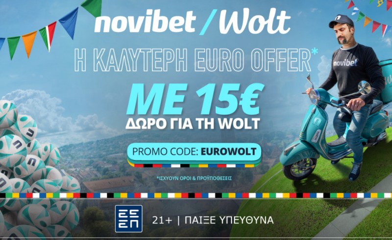 Novibet και Wolt παρουσιάζουν την καλύτερη EURO OFFER* για παραγγελίες 15€! Με αυτό τον τρόπο, όλοι έχουν την δυνατότητα να απολαύσουν το ευρωπαϊκό πρωτάθλημα με αποκλειστικό κουπόνι παραγγελίας* από τη Wolt.