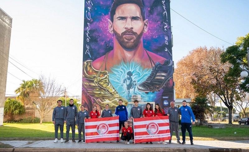 «Ο Θρύλος στο γκράφιτι του θρυλικού Μέσι στο Ροζάριο! Η σχολή του Ολυμπιακού στο Ροζάριο της Αργεντινής Club Atlético Provincial, έδωσε το "παρών" στο γκράφιτι που υπάρχει στην πόλη προς τιμήν του Λιονέλ Μέσι. Στην πόλη και στη γειτονιά όπου μεγάλωσε ο Αργεντινός σούπερ σταρ. Εκεί όπου ο Μέσι έμαθε τι είναι το ποδόσφαιρο φορώντας τη φανέλα της Νιούελς Ολντ Μπόις. Στην τοιχογραφία επίσης απεικονίζεται ένα φθαρμένο ποδοσφαιρικό παπούτσι και ένα χρυσό, δείχνοντας την πορεία του παιδιού από το Ροζάριο μέχρι τη στιγμή της καταξίωσης του Μέσι. Οι προπονητές και τα παιδιά της σχολής του Ολυμπιακού, βρέθηκαν στο σημείο και έστειλαν το δικό τους μήνυμα στην Ελλάδα και τον Θρύλο».