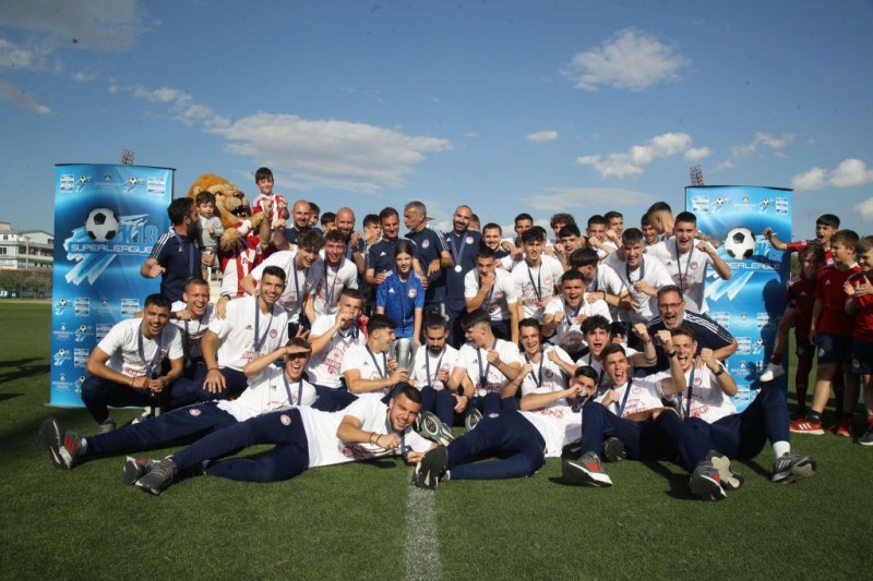 Θρύλος! Το πρωτάθλημα της Super League Κ19 έφτασε στα χέρια του τροπαιούχου Ολυμπιακού! Οι «ερυθρόλευκοι» Νέοι κατέκτησαν τη φετινή σεζόν 2022-23 τον τίτλο της Super League Κ19 και την Παρασκευή (19/05) είχαν τη δική τους γιορτή για το επίτευγμά τους στο προπονητικό κέντρο του Ρέντη.