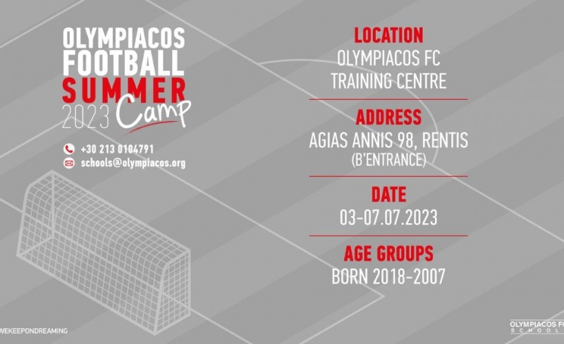 Οι πόρτες του προπονητικού κέντρου της πρώτης ομάδας και της ακαδημίας του Ολυμπιακού στο Ρέντη ανοίγουν για να υποδεχτούν και φέτος εκατοντάδες παιδιά από Ελλάδα και Εξωτερικό ώστε να φορέσουν την ερυθρόλευκη φανέλα, να μάθουν τις σημαντικές αρχές του ποδοσφαίρου και να διασκεδάσουν. Το Summer Camp του Θρύλου αποτελεί το καλύτερο μεταβατικό πρόγραμμα για τα παιδιά πριν τις καλοκαιρινές τους διακοπές!