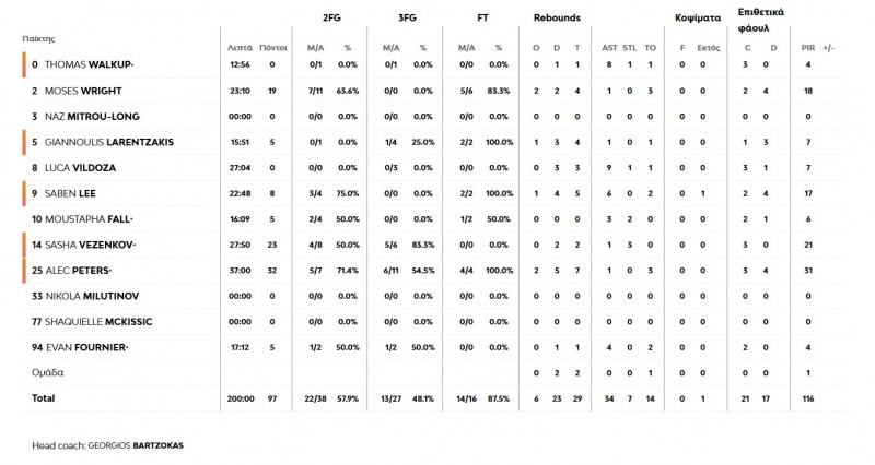 Ένας διαφορετικός... Ολυμπιακός εμφανίστηκε στο παρκέ στον μικρό τελικό της Euroleague. Οι Πειραιώτες που αγωνίστηκαν χωρίς πίεση και άγχος παρουσίασαν πολύ καλή εικόνα και έδειξαν ότι αδίκησαν τον εαυτό τους στο παιχνίδι με τη Μονακό. Οι Πειραιώτες ήταν εύστοχοι από το ξεκίνημα του παιχνιδιού, επέβαλαν το ρυθμό τους και σκόραραν συνολικά 33 πόντους στο πρώτο δεκάλεπτο (33-20, 10'). Με τους Πίτερς, Βεζένκοφ και Ράιτ να δείχνουν το δρόμο, οι «ερυθρόλευκοι» συνέχισαν στο ίδιο τέμπο και στο δεύτερο δεκάλεπτο, στο οποίο έφτασαν ακόμα και στο +15 (57-42), πριν ο Παναθηναϊκός μειώσει σε 57-46 στο τέλος του ημιχρόνου. Μάλιστα, ο Θρύλος έκλεισε το πρώτο ημίχρονο με τον Πίτερς να έχει 18 πόντους και 5 ριμπάουντ, τον Βεζένκοφ να μετράε 15 πόντους και τον Ράιτ να πετυχαίνει 14 πόντους. Μετά την ανάπαυλα ο Ολυμπιακός συνέχισε στο ίδιο τέμπο και στο τρίτο δεκάλεπτο, χωρίς να επιτρέψει στον Παναθηναϊκό να προσπεράσει ούτε μια στιγμή. Αντιθέτως, με ένα τρίποντο του Σάσα Βεζένκοφ στο τέλος της τρίτης περιόδου κράτησε τη διαφορά (75-64, 30') και πήγε στο τελευταίο μέρος του αγώνα, παραμένοντας σε θέση οδηγού. Οι Πειραιώτες, αν και είδαν τους «πράσινους» να μειώνουν, υπερασπίστηκαν το προβάδισμά τους και έφτασαν στη νίκη με 97-93 κατακτώντας έτσι την τρίτη θέση στη Euroleague...