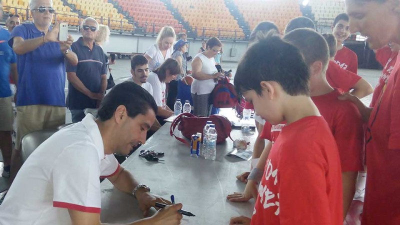 Ο κόουτς του Ολυμπιακού δέχθηκε το κάλεσμα του Νίκου Κεραμέα και πέρασε αρκετή ώρα με τα παιδιά, απαντώντας σε ερωτήσεις τους, υπογράφοντας εκατοντάδες αυτόγραφα και βγάζοντας αρκετές φωτογραφίες με παιδιά και γονείς.