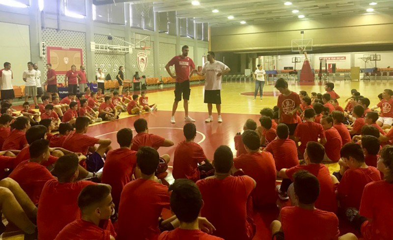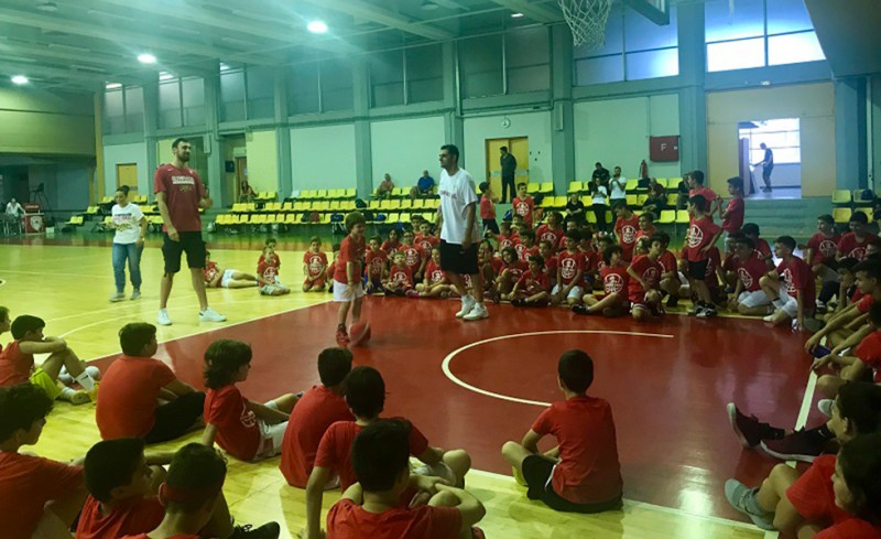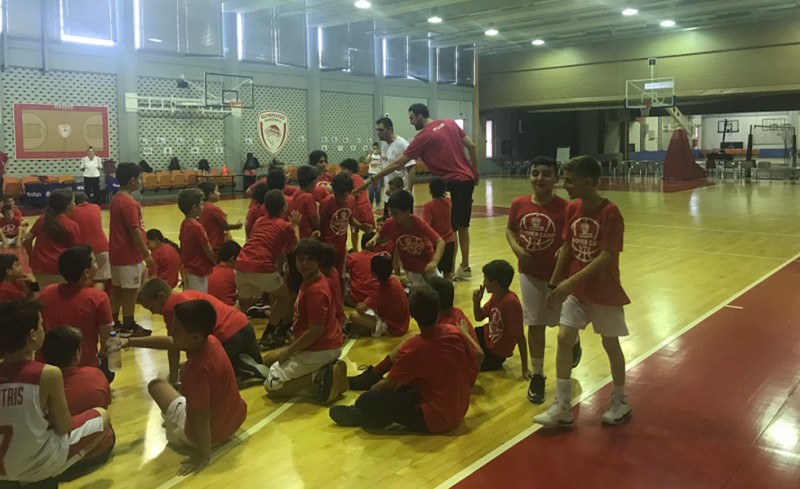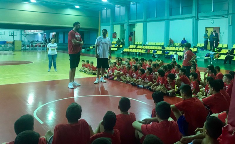 Οι νεαροί αθλητές δεν έχασαν την ευκαιρία να παίξουν μαζί του, ενώ του υπέβαλλαν αρκετές ερωτήσεις, και φυσικά, φωτογραφήθηκαν με τον Σέρβο σέντερ.
