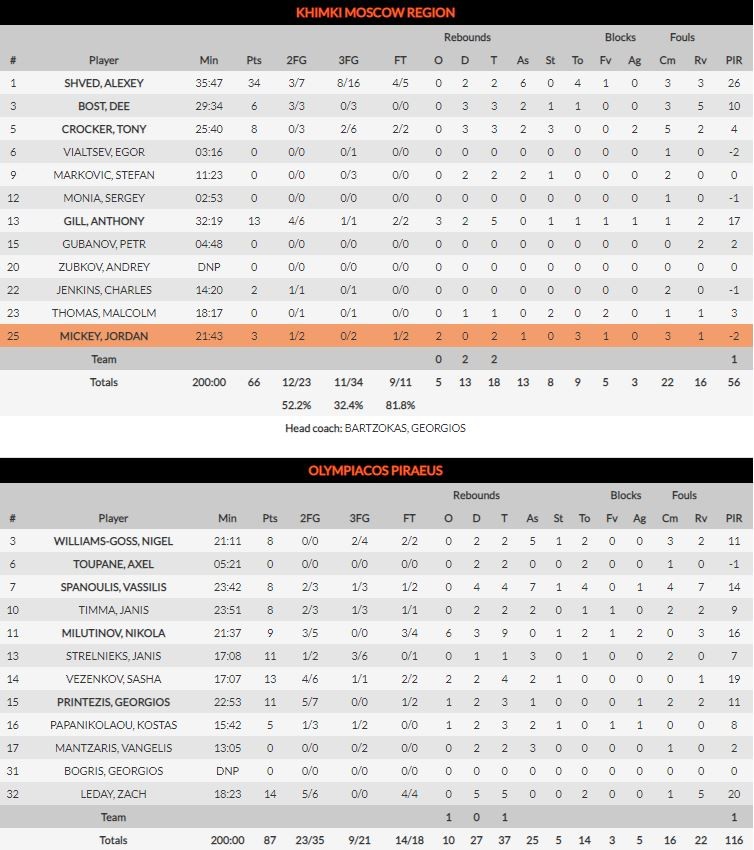 Όσο και αν προσπάθησε η Χίμκι για να μειώσει και να κάνει κάτι καλό στο ματς, ήταν μέχρι το τρίτο δεκάλεπτο. Στο τέταρτο ο Ολυμπιακός δεν επέτρεψε στους Ρώσους να κάνουν τίποτα στο παρκέ! Ήταν δυνατός, ώριμος και αποφασισμένος να φύγει με το «διπλό» και μάλιστα με μεγάλη διαφορά.
