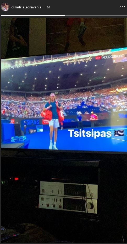 Συγκεκριμένα, ο διεθνής φόργουορντ του Ολυμπιακού ανάρτησε τη σχετική φωτογραφία σε story στον προσωπικό του λογαριασμό στο Instagram, στην οποία απεικονίζεται ο Τσιτσιπάς και μία ελληνική σημαία.