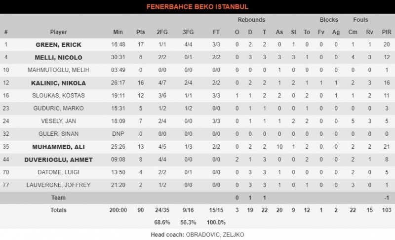 Στη συνέχεια σε κάθε προσπάθεια των Πειραιωτών η Φενέρ είχε την απάντηση και πλέον το παιχνίδι έμεινε σταθερά σε διψήφιο αριθμό στη διαφορά του σκορ, τελειώνοντας το παιχνίδι με 90-75.
