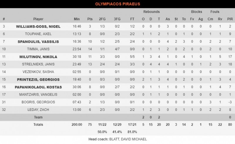Η ήττα αυτή δεν είναι και τόσο... κακή για τους Πειραιώτες, αφού βαθμολογικά δεν περίμεναν και πολλά απ' αυτό το ματς. Η προσοχή τους συγκεντρώνεται στη συνέχεια της διοργάνωσης και πιο συγκεκριμένα στα παιχνίδια που ακολουθούν με Μπαρτσελόνα (εντός), Μακάμπι (εκτός) και Εφές (εκτός). Ματς στα οποία θέλει η ομάδα σίγουρα δύο νίκες για να μπορεί να διεκδικήσει μία θέση στην 4άδα, αφού με τους Τούρκους «πολεμάει» για την 4η θέση του βαθμολογικού πίνακα και παράλληλα το πλεονέκτημα στα πλέι οφ.
