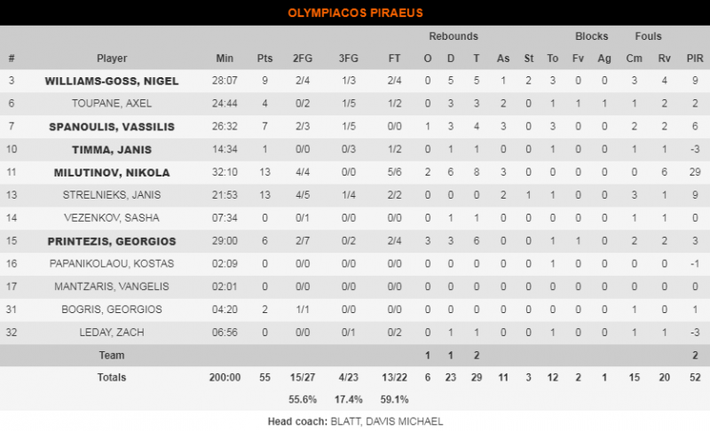 Έτσι η ομάδα του Πειραιά ουσιαστικά άφησε το ματς και έφτασε η διαφορά στους 23 πόντους με σκορ 49-72, μέχρι που έληξε το παιχνίδι με 55-76...