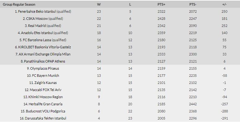 Δείτε τη βαθμολογία της Ευρωλίγκας:
