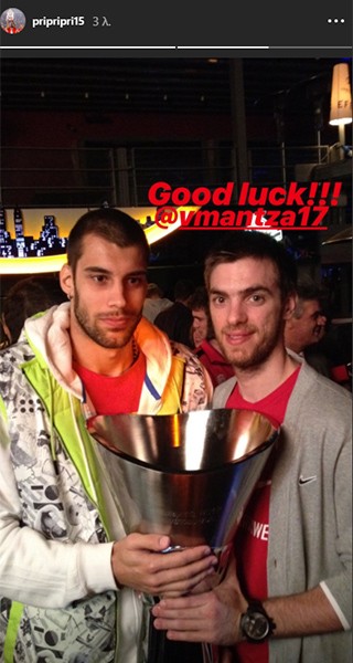 «Καλή τύχη», έγραψε ο Γιώργος Πρίντεζης, «ανεβάζοντας» και μία κοινή τους φωτογραφία με το τρόπαιο της Ευρωλίγκας.