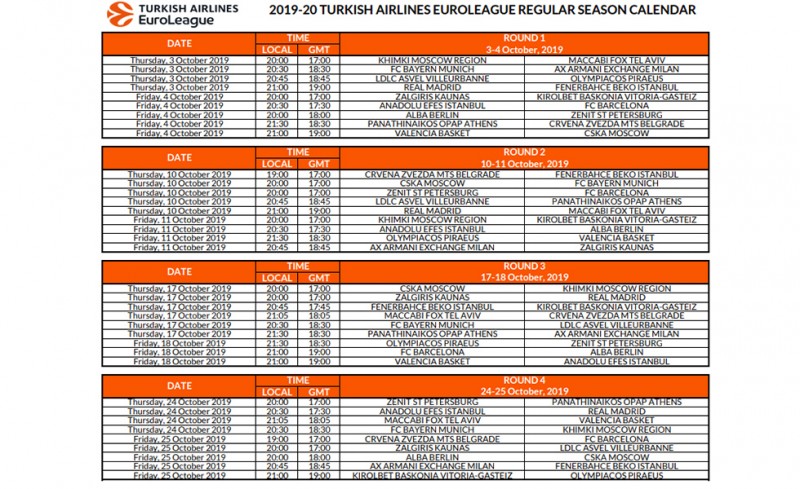 Το πλήρες πρόγραμμα της νέας Ευρωλίγκας, για την αγωνιστική περίοδο 2019-20, ανακοίνωσε η διοργανώτρια αρχή. Στις 3 Οκτωβρίου το πρώτο παιχνίδι του Ολυμπιακού, εκτός έδρας με τη Βιλερμπάν, ενώ το τελευταίο είναι με την Μπαρτσελόνα.