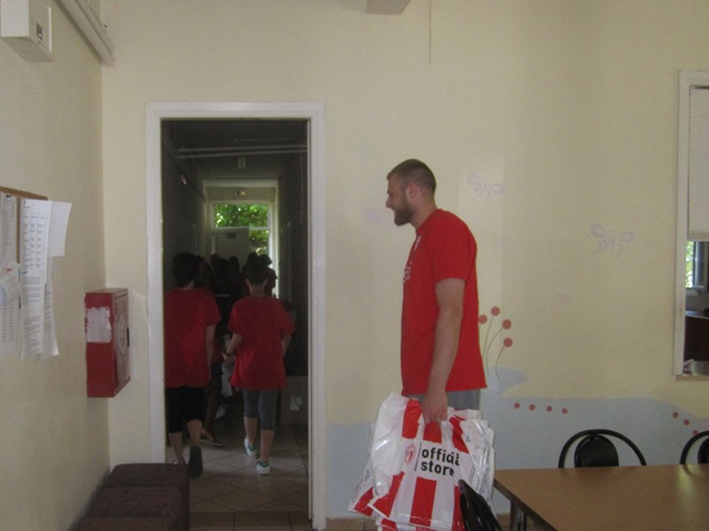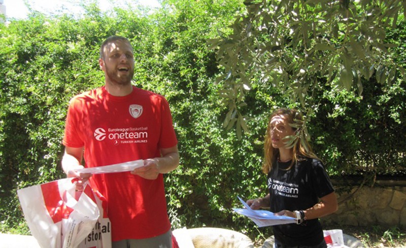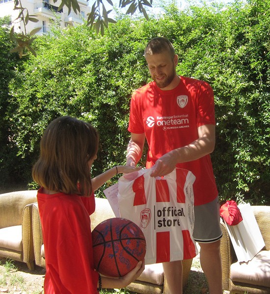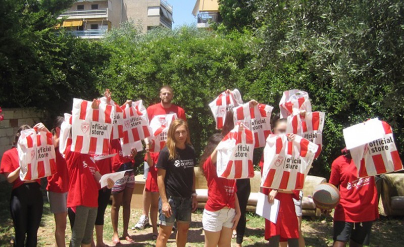 Λίγο πριν το φινάλε όπου ευχήθηκε καλές διακοπές, μοίρασε στα κορίτσια δώρα από το Olympiacos BC official store!