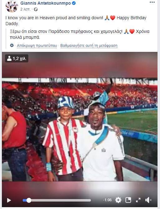 Μία πολύ χαρακτηριστική φωτογραφία, με τον Γιάννη Αντετοκούνμπο μικρό, δίπλα στον πατέρα του, μέσα στο Καραϊσκάκη, είναι από τις πρώτες που συναντά κανείς, παρακολουθώντας το βίντεο-αφιέρωση, στον πατέρα του. Ο Γιάννης δεν τον έχει πλέον μαζί του, αλλά τον κρατά για πάντα στην καρδιά του. Και τέτοιες φώτο, όπως εκείνη, στην οποία ο μικρός Γιάννης φορά την μπλούζα του Ολυμπιακού και είναι με τον πατέρα του στο γήπεδο του Θρύλου, τον κάνουν ν1α συγκινούνται…