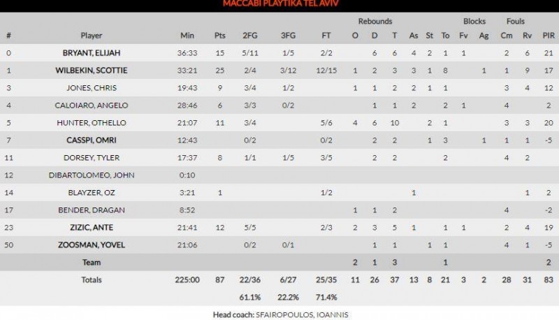 Η ομάδα του Γιάννη Σφαιρόπουλου κατάφερε να απαντήσει γρήγορα με δύο καλάθια του Χάντερ και να κάνει και πάλι ντέρμπι το παιχνίδι. 7 δευτερόλεπτα πριν από το τέλος και με το σκορ στο 83-86 οι διαιτητές δίνουν τρεις βολές στον Γουίλμπεκιν σε φάουλ που του έγινε στο κέντρο και μάλιστα πριν πιάσει τη μπάλα, εκείνος όμως θα αστοχήσει στην τελευταία και στη συνέχεια θα κάνει φάουλ στον Λαρεντζάκη εκείνος θα ευστοχήσει στην πρώτη και ο Ολυμπιακός θα φύγει νικητής από το Ισραήλ με 87-89.