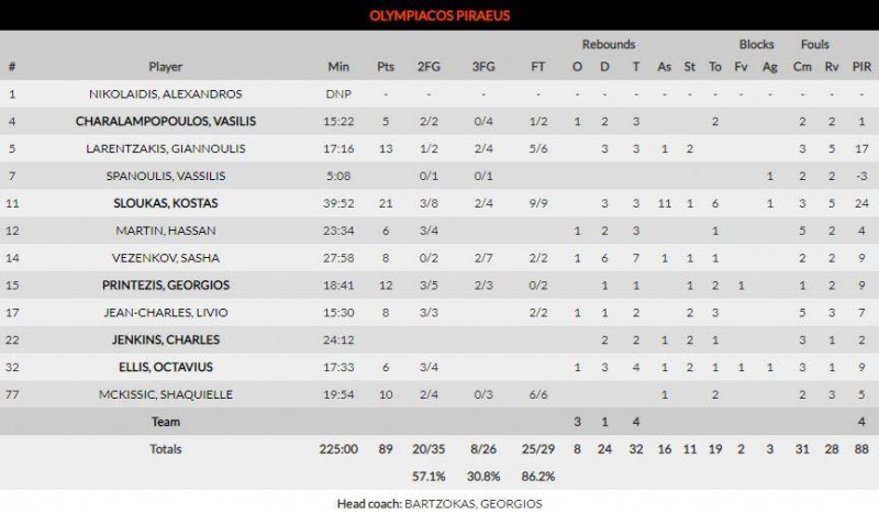 Ήλεγχε απόλυτα το ρυθμό και μέσα από την καλή του άμυνα, αλλά και τις σωστές επιλογές στην επίθεση κατάφερε να διατηρεί ένα μικρό προβάδισμα. Στο τέλος το παιχνίδι έγινε πολύ δραματικό, αφού το σκορ πήγαινε πόντο πόντο με αποτέλεσμα κάθε μπάλα να ζυγίζει πολύ. Λίγα δευτερόλεπτα πριν από το φινάλε οι διαιτητές δεν δίνουν καθαρό φάουλ πάνω στον Σλούκα και δέχθηκε και ένα τρίποντο μαχαιριά από τον Γουίλμπεκιν με τη διαφορά να πηγαίνει στους 4.