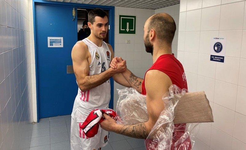 Ο φόργουορντ της Ρεάλ Μαδρίτης, Αλμπέρτο Αμπάλντε, ζήτησε μετά το τέλος της χθεσινής (02/04) αναμέτρησης από τον Βασίλη Σπανούλη την φανέλα του και ο αρχηγός δεν αρνήθηκε να κάνει πράξη την επιθυμία του.