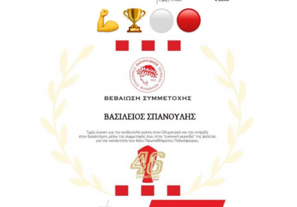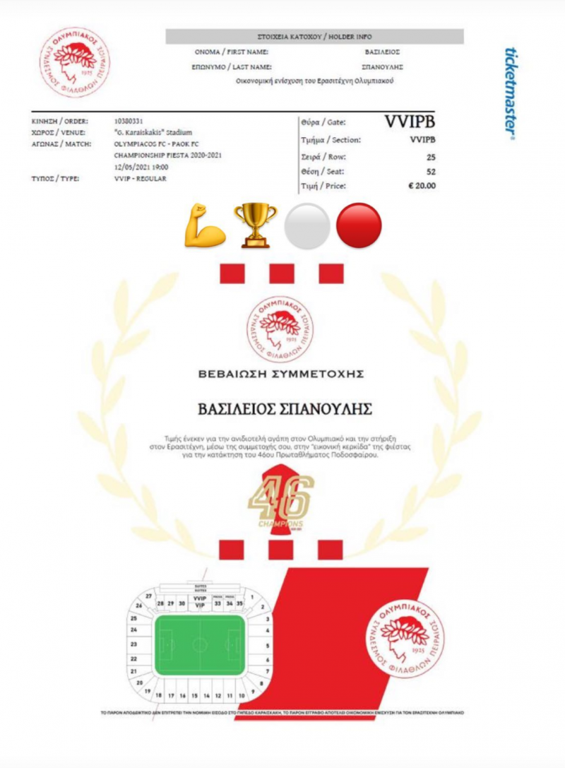 Ο αρχηγός θα είναι παρών. Ο αρχηγός θα είναι, εικονικά, εκεί. Θα είναι δίπλα στην ομάδα ποδοσφαίρου, του Θρύλου, όταν εκείνη θα σηκώνει το 46. Η αγάπη του Βασίλη Σπανούλη για τον Ολυμπιακό δεν γνωρίζει όρια. Όπως δεν πρέπει να γνωρίζει και η δική μας. Όλων μας.