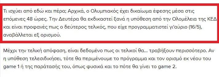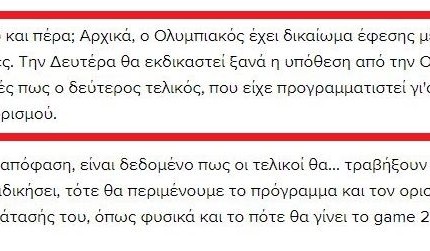 Από χθες ήξεραν στην προπαγάνδα τι παιζόταν και τι ετοιμαζόταν και είχαν… έτοιμα κείμενα! Οι παίκτριες του Παντελάκη, όμως, έμαθαν ενώ πήγαιναν στο ΣΕΦ! Μιλάμε για ένα κακοπαιγμένο έργο, το οποίο σκηνοθέτησαν και συνεχίζουν να σκηνοθετούν οι ΚΕΔ, ΕΟΚ και με αρωγό την προπαγάνδα του site της παραμύθας… Όλη η Ελλάδα είχε καταλάβει που πήγαινε το πράγμα… Πως σχεδίαζαν να στερήσουν, στα χαρτιά, τη νίκη που ο Ολυμπιακός πήρε ΔΙΚΑΙΑ στο παρκέ! Αλλά στην προπαγάνδα ήξεραν, όπως φαίνεται, μετά βεβαιότητας, τι θα συνέβαινε, αφού είχαν ετοιμάσει και την αρθρογραφία τους, για να προλάβουν να… πανηγυρίσουν! Αλλά το μόνο που κατάφεραν, ήταν να ξεφτιλιστούν, αφού από την πρεμούρα τους… δεν άλλαξαν ούτε το κείμενο!