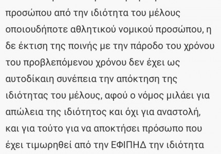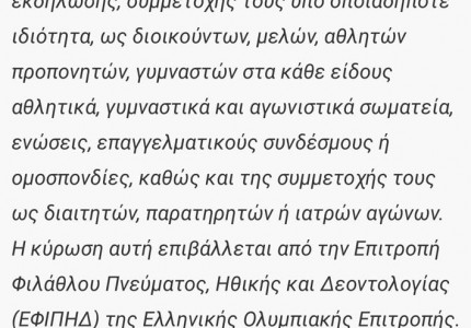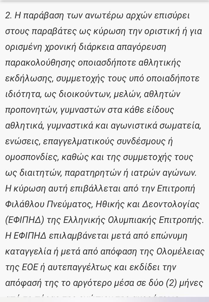 Αφετέρου, η Χατζηνικολάου, η οποία ήταν τιμωρημένη τα τελευταία τρία χρόνια, για τη γνωστή υπόθεση, δεν είχε δικαίωμα εγγραφής ως αθλήτρια, έχοντας χάσει την αθλητική της ιδιότητα, βάσει των κανονισμών της ΕΦΙΠΗΔ (Επιτροπή Φίλαθλου Πνεύματος, Ηθικής και Δεοντολογίας της Ελληνικής Ολυμπιακής Επιτροπής).