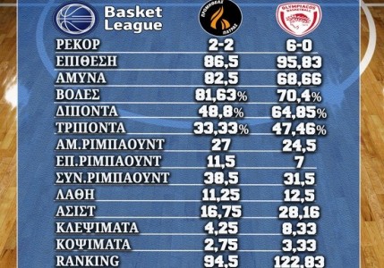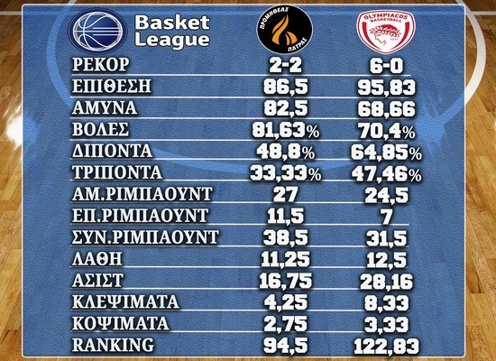 Συγκεντρωτικά οι αριθμοί των αγώνων των δύο ομάδων για την Basket League…