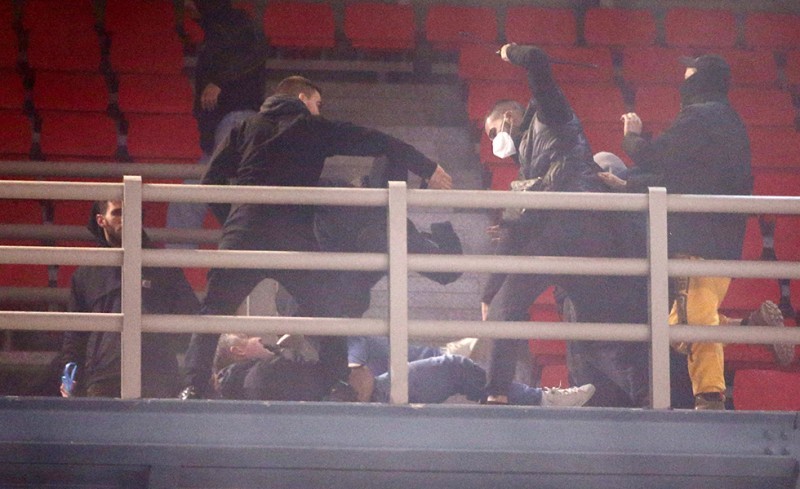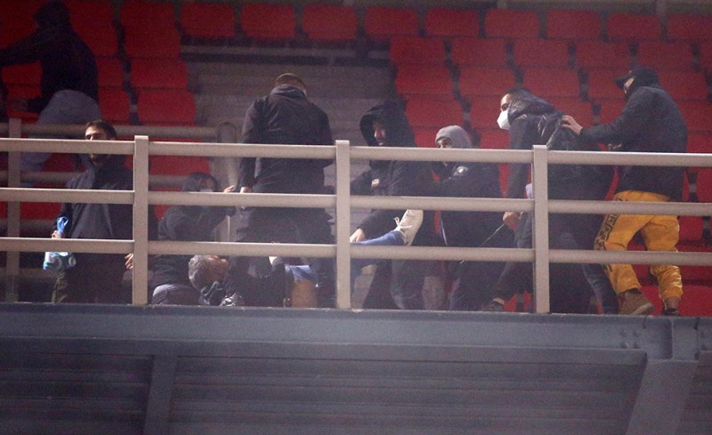 Μάλιστα, οι δύο ομάδες σταμάτησαν το ζέσταμά τους και κοιτούσαν τα θλιβερά επεισόδια!