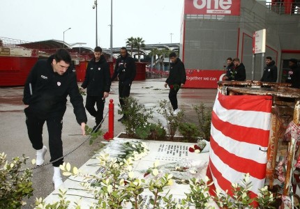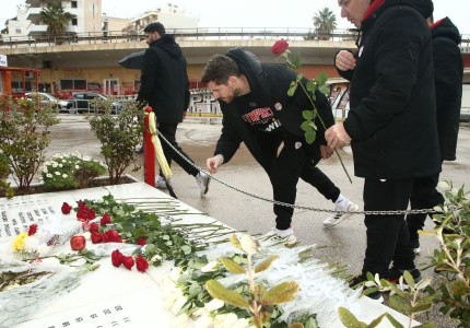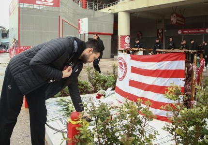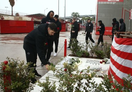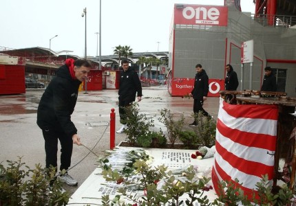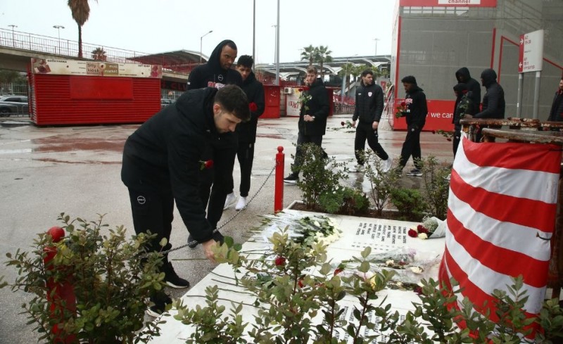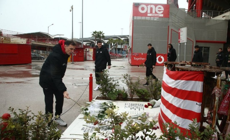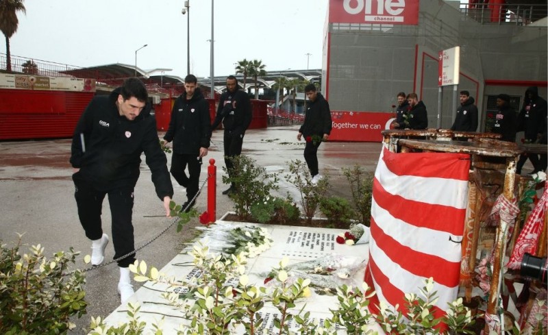 Ο Γιώργος Μπαρτζώκας και οι παίκτες του άφησαν από ένα λουλούδι και θέλησαν με αυτό τον τρόπο να δείξουν ότι δεν ξεχνούν την μεγαλύτερη τραγωδία που βίωσε ο ελληνικός αθλητισμός… Έλληνες και ξένοι απέτισαν φόρο τιμής στα 21 θύματα της Θύρας 7, που χάθηκαν τόσο άδικα...