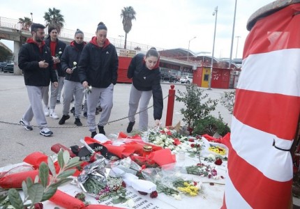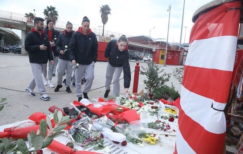 Μετά τις ομάδες χάντμπολ και πόλο Ανδρών/Γυναικών του Θρύλου, η ομάδα μπάσκετ Γυναικών του Ολυμπιακού βρέθηκε στο μνημείο της Θύρας 7 το μεσημέρι της Παρασκευής (10/2) και απέτισε φόρο τιμής στα 21 θύματα της μεγαλύτερης τραγωδίας που βίωσε ο ελληνικός αθλητισμός, αφήνοντας από ένα λουλούδι...