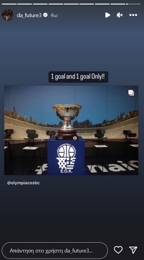 Συγκεκριμένα, μέσω instastory, ο Αμερικανός γκαρντ έστειλε μήνυμα κούπας γράφοντας: «Ένας μοναδικός στόχος».