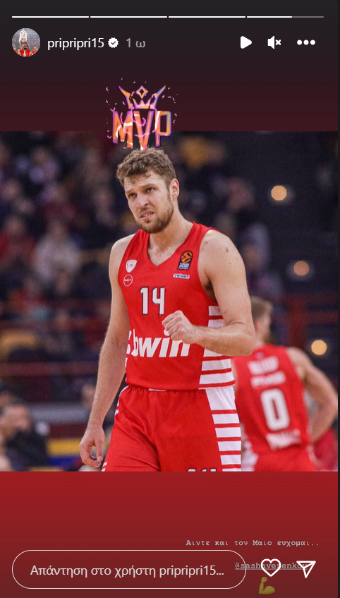 «Άντε και τον Μάιο εύχομαι…», έγραψε ο Γιώργαρος, σε ένα Instagram story, στο οποίο ο Βεζένκοβ φοράει το... στέμμα του MVP.