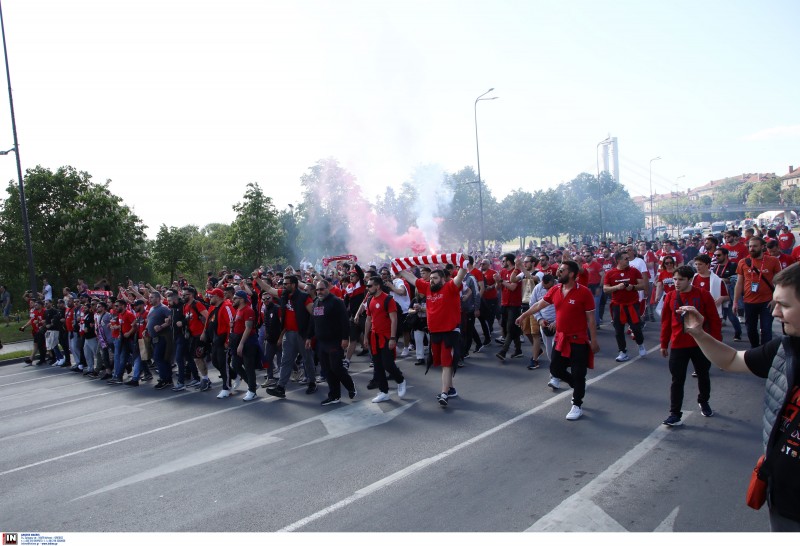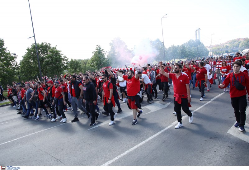 Οι Πειραιώτες δεν σταματούν να τραγουδούν και να προσδοκούν να δουν την ομάδα τους να επικρατεί της Ρεάλ Μαδρίτης και να σηκώνει την τέταρτη Ευρωλίγκα στην ιστορία της.