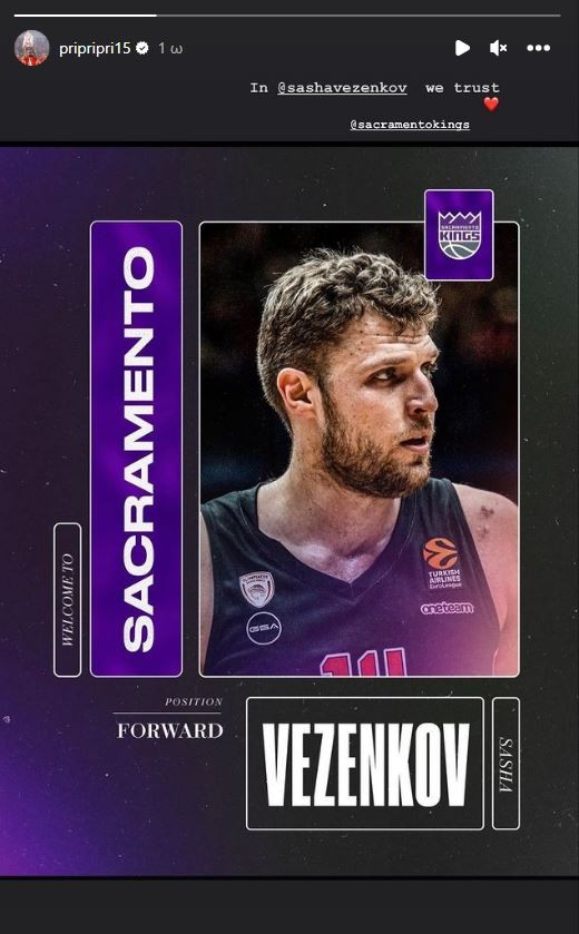Ο Γιώργος Πρίντεζης αποθέωσε τον Σάσα Βεζένκοφ για ακόμα μία φορά, με αφορμή την ανακοίνωση του Βούλγαρου παικταρά από τους Σακραμέντο Κινγκς.
