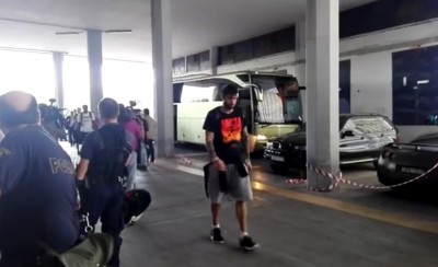 Οπαδοί του Ολυμπιακού αποθέωσαν τον Πρίντεζη κατά την άφιξη της αποστολής στο ΣΕΦ.