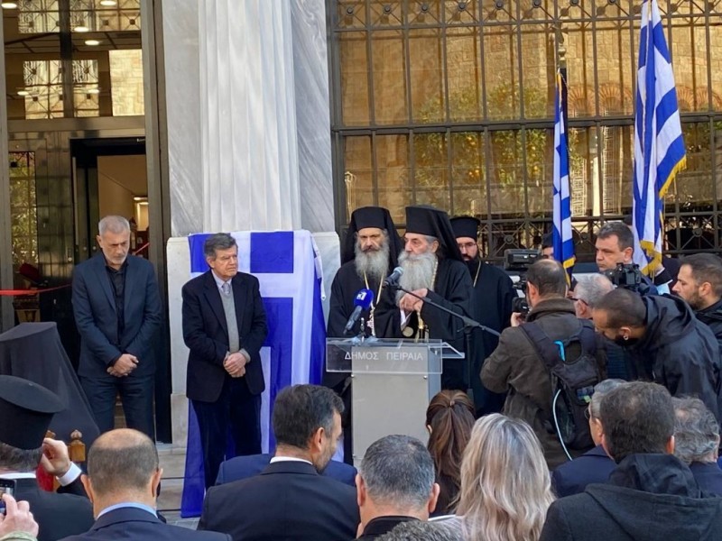 Χαιρετισμό απηύθυνε ο Μητροπολίτης Πειραιώς κ. Σεραφείμ που τέλεσε και τον αγιασμό παρουσία του Μακαριώτατου Αρχιεπισκόπου Αθηνών και Πάσης Ελλάδος, ο οποίος ευλόγησε το «Μαρινάκειον Μέλαθρον», ενώ παρευρίσκονται επίσης δεκάδες αρχιερείς από όλη την Ελλάδα.