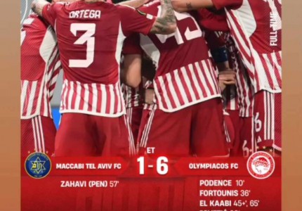 Ο Ολυμπιακός πέτυχε ανεπανάληπτο ρεκόρ στα Κύπελλα Ευρώπης! Ο Θρύλος -της Ευρώπης- έγραψε ιστορία, αφού έκανε μία μυθική ανατροπή στην Τοπόλα, επικρατώντας με 6-1 (!) της Μακάμπι Τελ Αβίβ, στη ρεβάνς της φάσης των «16» του Conference League και προκρίθηκε θριαμβευτικά στην οκτάδα.