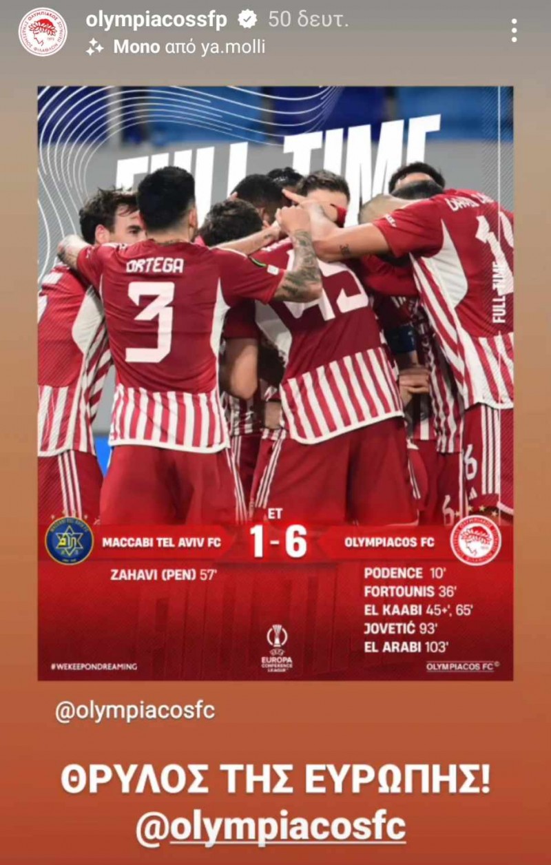 Ο Ερασιτέχνης, με ανάρτηση στα social media, έστειλε το μήνυμά του για τον ποδοσφαιρικό Ολυμπιακό και το ευρωπαϊκό τους έπος, γράφοντας χαρακτηριστικά: «ΘΡΥΛΟΣ ΤΗΣ ΕΥΡΩΠΗΣ».