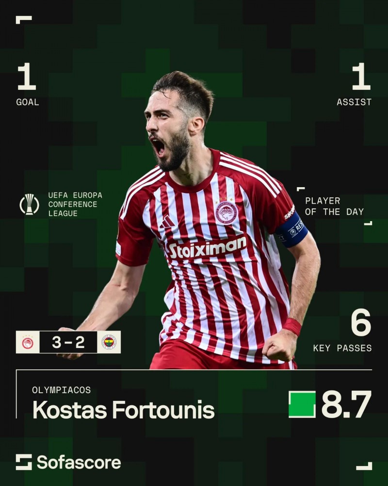 Πέρα από τις δύο διακρίσεις που «έλαβε» από την UEFA, ο Κώστας Φορτούνης «έλαμψε» και στην πλατφόρμα του «sofascore», αφού αξιολογήθηκε με «8,7», ενώ φυσικά ήταν και στην κορυφαία ενδεκάδα της αγωνιστικής. Από εκεί και πέρα, τα υπόλοιπα πρόσωπα που διακρίθηκαν ήταν αυτά των Μαρτίνεζ (τερματοφύλακας, Άστον Βίλα), στην άμυνα οι τρεις από τους τέσσερις παίκτες της Φιορεντίνα, Μπιράγκι, Μαρτίνεζ Κουάρτα και Ντοντό, αλλά και ο σέντερ μπακ της Μπριζ, Μέχελε. Στα χαφ σε σύστημα 4-2-3-1 ήταν δύο παίκτες της Μπριζ, οι Βανάκεν και Βετλέσεν. Στα αριστερά ήταν ο Φορτούνης, στα δεξιά ο Καχβετσί της Φενέρμπαχτσε και στην κορυφή της «φροντ λάιν» ο Γουότκινς και ο ΜακΤζιν από πίσω του, σε ρόλο «δεκαριού». Αμφότεροι αγωνίζονται στην Άστον Βίλα.