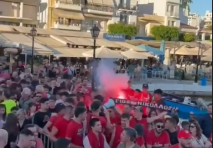 Τελευταία στάση...Άγιος Νικόλαος για τα ευρωπαϊκά τρόπαια του Ολυμπιακού και, ως συνήθως, επικράτησε «πανζουρλισμός» από το λαό του Θρύλου.