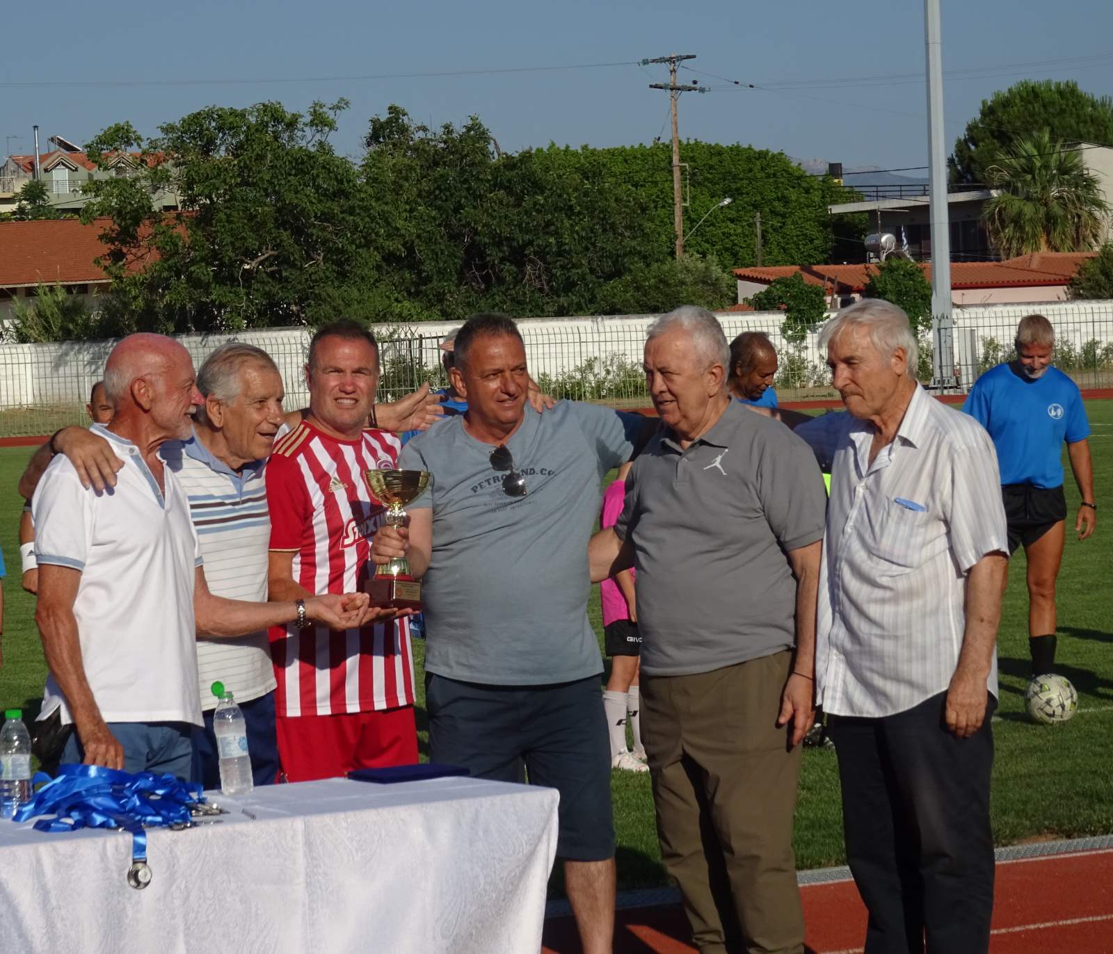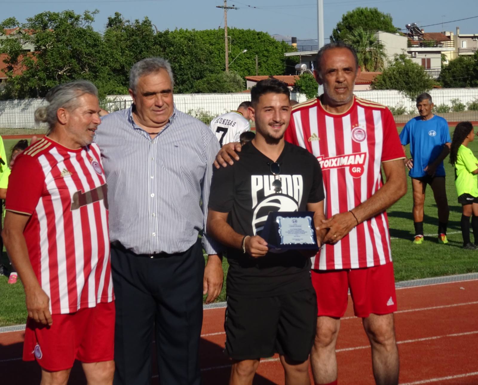 Στο αγωνιστικό κομμάτι, ματς το οποίο πραγματοποιήθηκε με τη στήριξη της ΠΑΕ Ολυμπιακός και έληξε με 2-7, οι «ερυθρόλευκοι» σημείωσαν επτά γκολ με σκόρερ τους Λουτσιάνο (2), Λύγκο (2), Καλύκα Καλαμάρα και Σιδέρη, ενώ από πλευράς των γηπεδούχων τα γκολ σημείωσαν οι Μαντάς, Αγγελάτος.